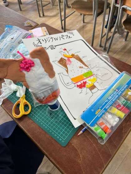 以前にもお伝えした「パフェ」。最後のクラスも完成間近です(写真左)