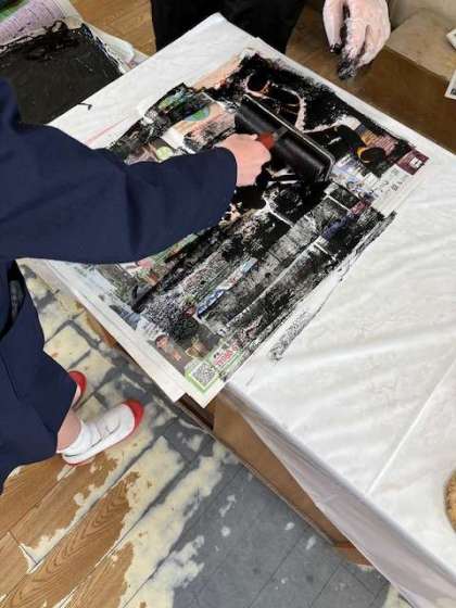 ころころころ…ローラーでインクをぬって…