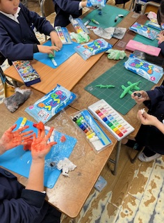紙粘土で工作をしていました。
