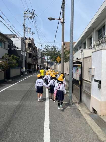 先生からお話を聞いて「いってきまーす!」と元気に出発しました(写真)。