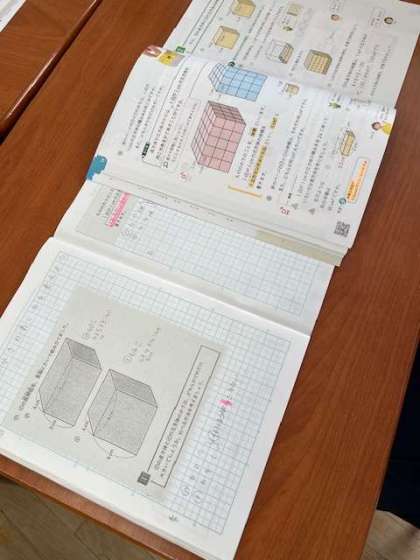 「直方体と立方体のかさの比べ方と表し方を考えよう」の学習をしています。