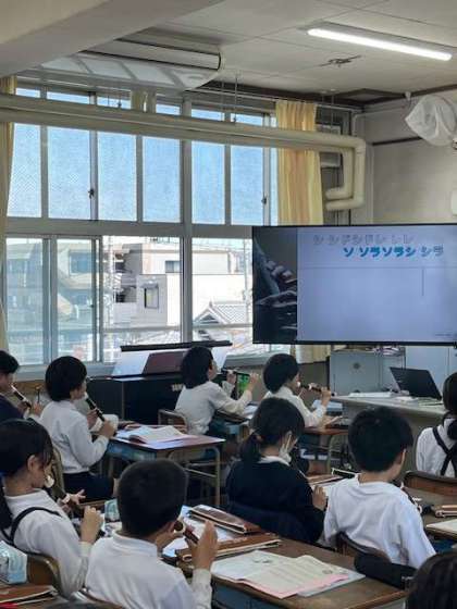 4年生の教室からは、リコーダーの演奏が聞こえてきました。