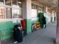 5年生が多目的室に集まって、春の遠足の説明を受けていました。