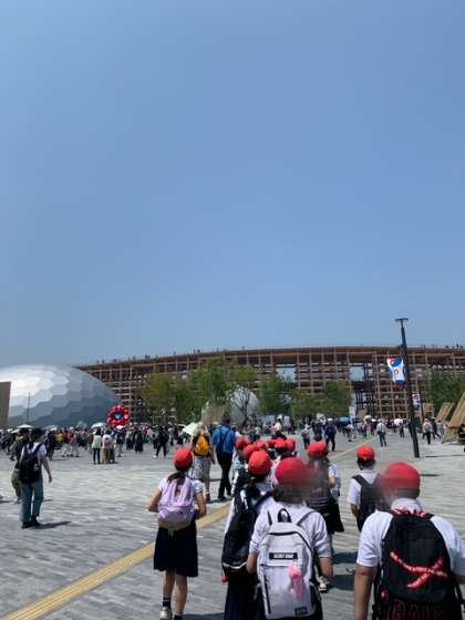 11時ごろに無事入場し、ただいまお昼ご飯を食べる団体休憩所に向かっています。