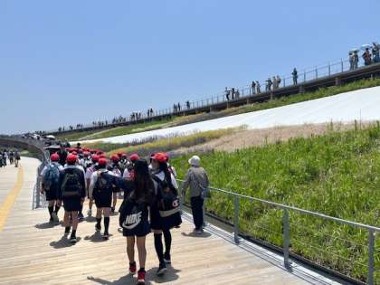 大屋根リングを散歩中