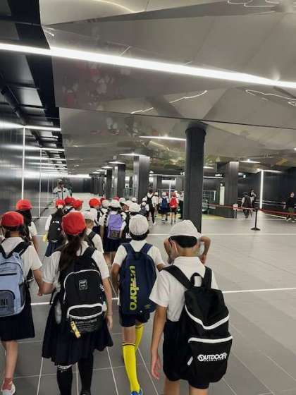 夢洲駅を出発しました。 ^_^{家に帰るまでが遠足です!