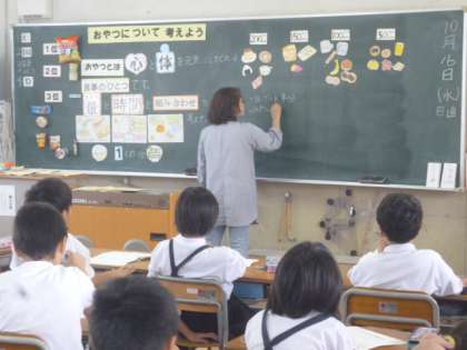 「おやつについて考えよう」をめあてに、学習しました。