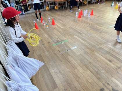 ^_^{投げ終わって線をこえたらおこられちゃった…
