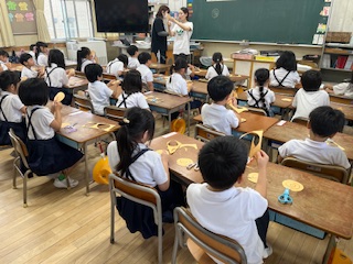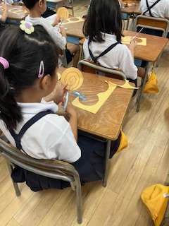 ハサミを使って、カタツムリの殻(?)を切っていきます。
