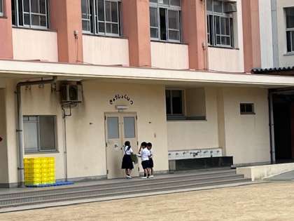 職員室や保健室の場所を確認しながら、ドアにはられた「文字」を集めていきます。