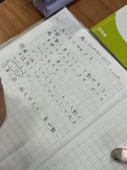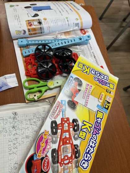 教室では、「風の強さと車が動くきょり」の実験準備をしていました。