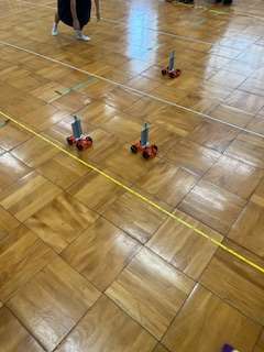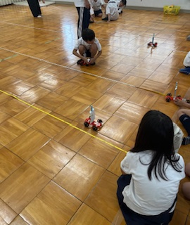 昨日、ホームページでお伝えした「風の強さと車が動くきょり」の実験をしていました。