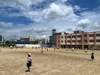 日差しが強く、なかなかの暑さでしたが、元気いっぱい運動場で遊ぶ姿が見られました。