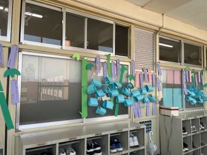 短冊に願い事を書いた掲示物がいろいろな場所にあります。