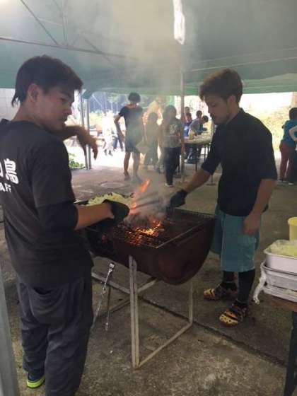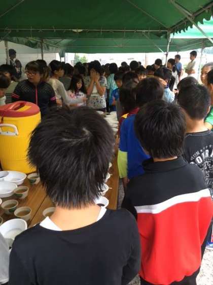 スタッフの方が焼いてくれて、子どもたちは立食です。