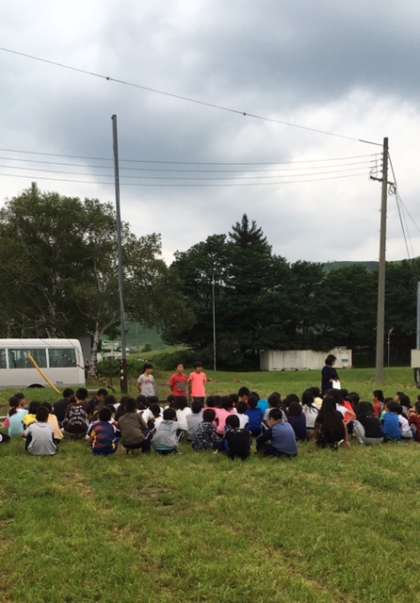 おはようございます。7月25日(月)、林間学習の最終日3日目がスタートしました。今朝も7時から朝の集いを行いました。雲ゆきがあやしく、雨が降ってきそうです