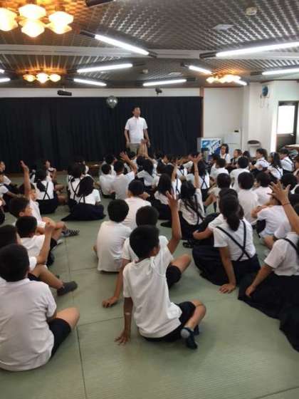 10時からのアイスクリーム作りまで30分ほど時間が作れたので、急きょ大広間に集まりゲーム大会をしました。