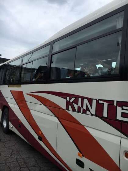 雨がほぼあがりました。バスに乗り込み、宿舎を後にしました。