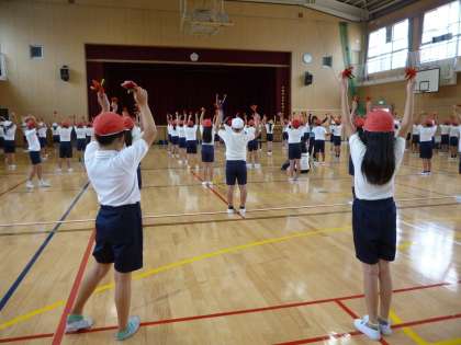 4年生は、9月5日の5,6時間目に、「よさこい出前授業」をしました。今年の運動会で取り組む「よさこい」を専門家の人に習いました。体育館は蒸し暑かったのですが、先生の熱心な指導の下、子どもたちも頑張っていました。運動会を楽しみにしておいてください。