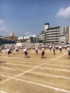 3年生の団体演技、心を一つに世界へはばたけ です。
