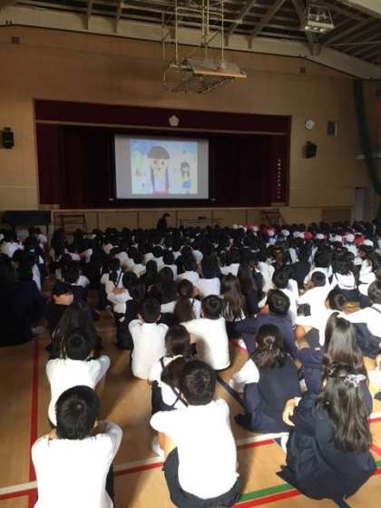 そして、みんなに作ってもらい捧げてくる千羽鶴を紹介しました。