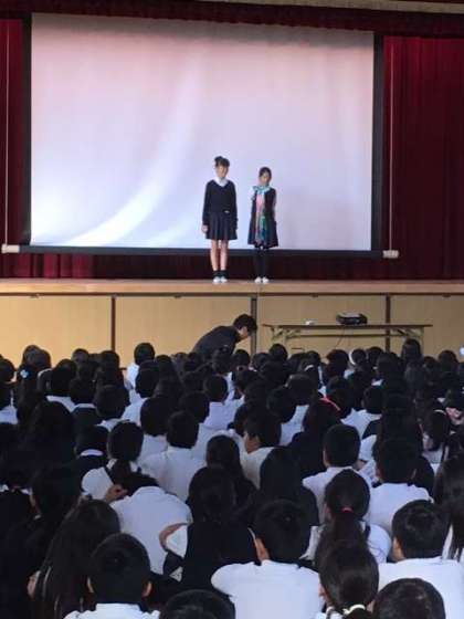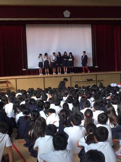 10月27日からの修学旅行に向け、26日全校で修学旅行前集会を開きました。