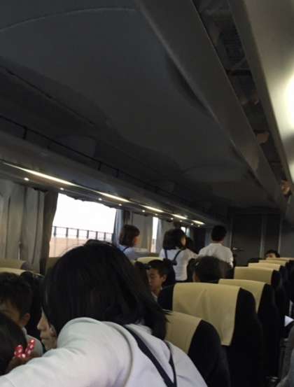 4時すぎ、岡山のホテルに向け、バスに乗りました。バスレクの続きが始まりました。