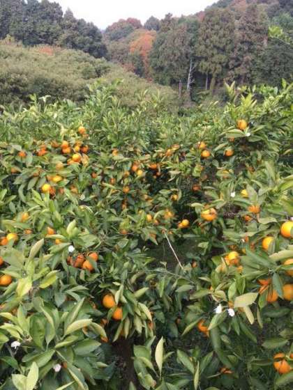 近鉄の滝谷不動駅から約40分山道を歩いて登りました。まずはミカン狩り。食べ放題です。みんな思い思いに美味しそうなミカンを探し、�据いでは食べながら、甘いとか酸っぱいなどと感想を漏らしていました。