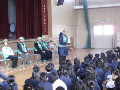 雨の日や風の強い日も、また先日は雪の降る日にも子どもたちのために安全を見守っていただいています。本校では約50名の方が見守りをしていただいています。本当にありがとうございます。