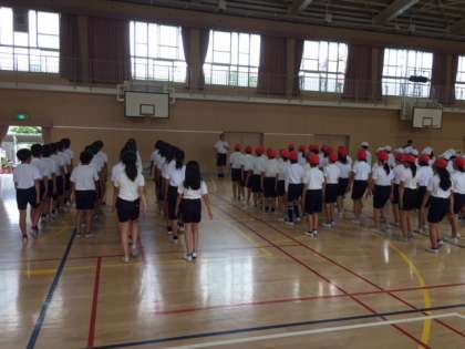 気持ちを一つにして全員の動きをそろえることを意識して取り組むことができました。最後には、「取り組む態度がすばらしく、なによりみんなのやる気が伝わってきて、先生も楽しかった。」とお褒めの言葉をいただきました。