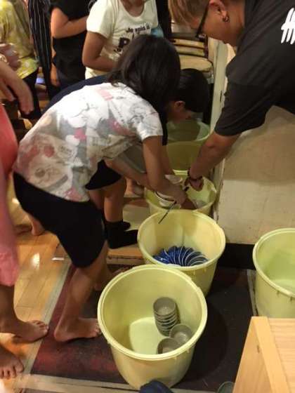 ごちそう様でした。食べた後は、みんなで協力して後かたづけです。