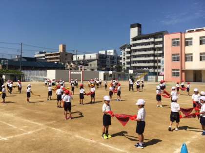 1年生にとっては、初めての小学校の運動会です。練習によく頑張っていますので、本番でも楽しです。