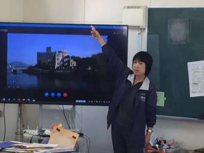 10月27日(金)8時35分、6年生が広島の平和記念公園で平和祈念式を行いました。校内のICT機器を活用し、その模様を実況中継し、1年生から5年生が教室の大型ディスプレイで視聴しました。6年生の姿から、緊張感と平和に対する思いが全校児童に伝わったように感じました。
