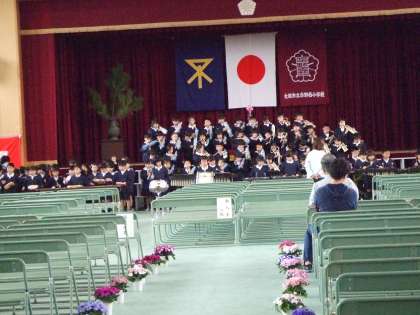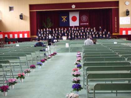 4月5日(木)明日の入学式に出席する2年生の皆さんが体育館で練習しています。2年生の皆さん、ありがとう!!明日の入学式頑張ってください。
