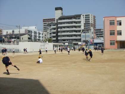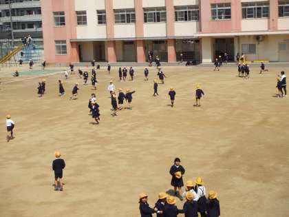 運動場ではみんな元気に遊んでいます。