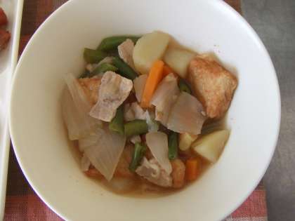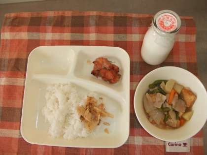 5月17日(水)の給食は鶏肉のてり焼き、じゃがいもとあつあげの煮物、ごまかかいためです。鶏肉は甘辛くしっかり味がついていました。じゃがいもとあつあげの煮物はほくほくのじゃがいもに厚揚げ、三度豆、豚肉、にんじん、玉ねぎ、きゃべつが入ってご飯に合うおいしい味付けでした。ごまかかいためはたけのこに甘辛いうすあじがついてかつおぶしといりごまの風味がしておいしかったです。ごちそうさまでした。