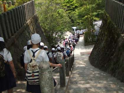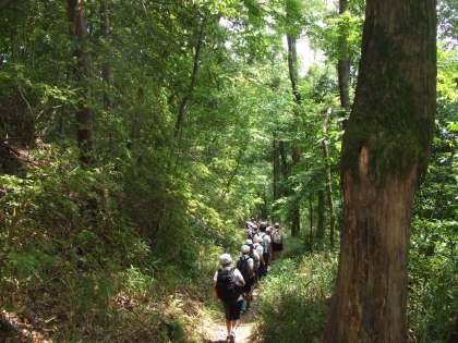 遠足の様子です。頑張って歩いています。急な下り坂、気を付けて。