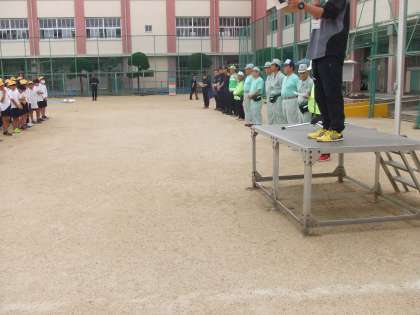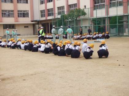 5月19日(土)土曜授業で防災訓練を実施しました。昨日からの雨も上がり、朝から爽やかな風が吹いています。地域の防災リーダーの皆様、消防署の皆様、平野区役所の皆様にお越しいただき、訓練を実施しました。4年、5年、6年は消防署の方による防災に関する授業、負傷者搬送体験、救命救急処置体験&DVD鑑賞をローテーションしました。1年、2年、3年は防災に関する授業、パネル展示見学&救命級処置見学、負傷者搬送見学&消防車見学をローテーションしました。今日は「自分の命を守ることと人の命を救う」授業。子どもたちは真剣に取り組んでいました。
