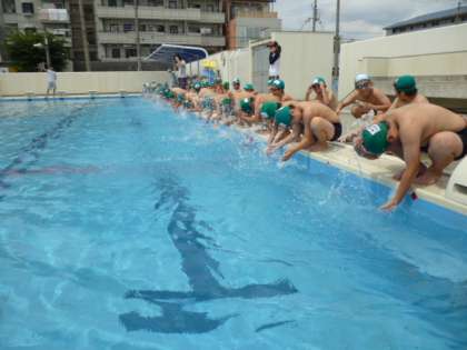 6月24日(月)ようやくプール開きができました。朝は気温が上がらず5限目の5年生が今年最初のプールに入りました。