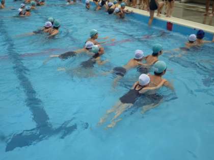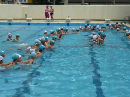 7月3日(水)3・4限に1年生と6年生による水泳交流を行いました。天気も気になるところでしたが、温かい日差しの下、楽しく交流できました。