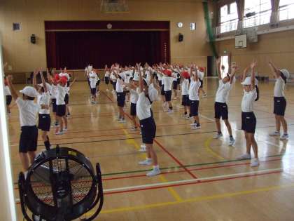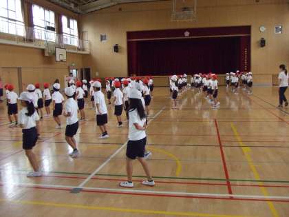 9月11日(火)2年生は体育館で運動会に向けての活動を行っています。みな真剣に一所懸命です。運動会が楽しみです。