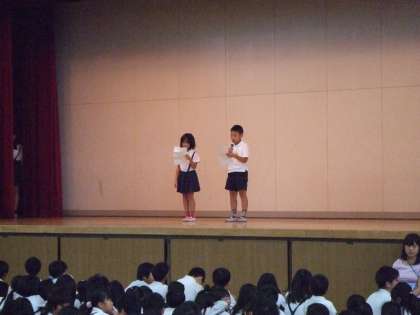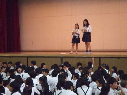 10月4日(木)朝の時間に児童集会を行いました。今日はスポーツ当てクイズです。代表委員の人が学年ごとに問題を出し、答えていきます。楽しい時間を過ごしました。また、代表委員からの連絡もありました。
