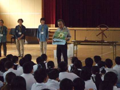 10月18日(木)5年生が平野区わたの会の皆様からご指導いただき「わた体験」を行っています。わたから種を取り除き糸へ紡ぐ工程を体験しています。