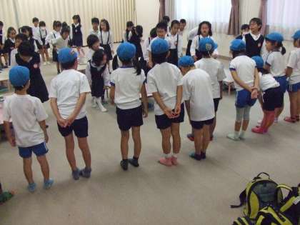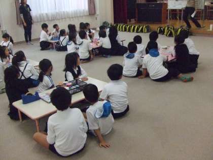 10月23日(火)1年生が平野西保育所の皆さんと一緒にけん玉作りやこまで遊びました。楽しい時間を過ごしました。平野西保育所の皆さんありがとうございました。
