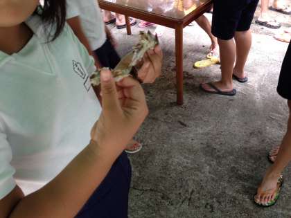 とった魚を食べています。