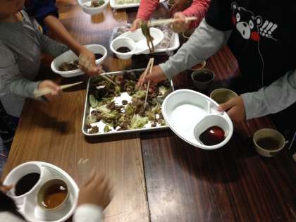 暗い中ですが、子どもたちは明るく楽しんでいます。