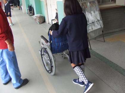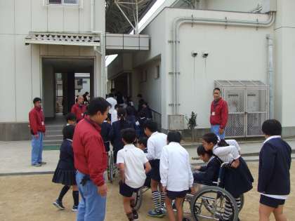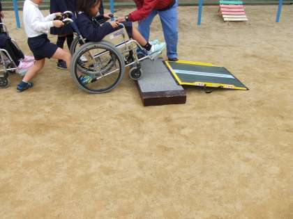 11月13日(火)4年生のみなさんはリハビリテーションセンターの方の指導の元、車いす体験の行いました。子どもたちは実際に車いすに乗ることで少しの段差や狭いところの通行が困難であることを経験しました。また、車いすの介助の仕方も教えていただきました。