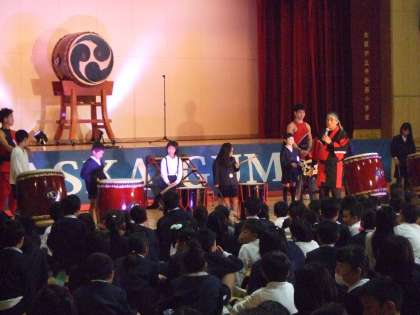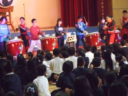 11月14日(水)「舞太鼓あすか組」の和太鼓の演奏を鑑賞しました。体育館に和太鼓の大きな音が響き渡っていました。体験コーナーでは各学年の代表のこどもたちが太鼓をたたきました。すごく上手たたいていました。先生も太鼓をたたきました。楽しい時間でした。