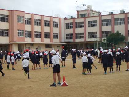 11月15日(木)児童集会を行いました。たて割り班を三つに分けて一つのグループは運動場で縄跳びしています。みんな上手く飛べています。楽しい時間です。