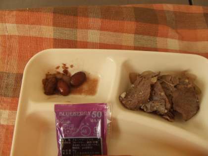 11月21日(水)の給食は牛肉の香味焼き、豚肉と大根のカレー煮、うずら豆のグラッセ、パン、牛乳です。牛肉の香味焼きは玉ねぎが入っていて、塩コショウ、ウスターソースでおいしく仕上がっています。豚肉と大根のカレー煮はニンジン、大根、ジャガイモが入っています。ブルべりージャムも付いていました。とてもおいしかったです。ごちそうさまでした。